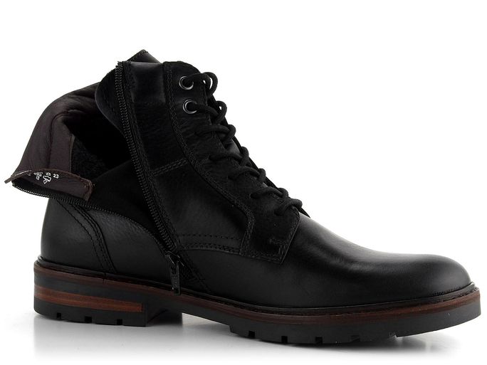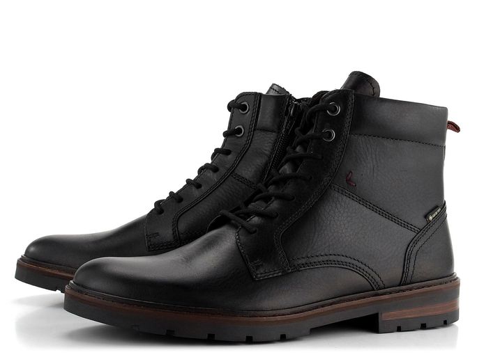 Pro muže, kteří hledají eleganci a kvalitu, přináší značka Pius Gabor kožený zateplený kotník v černé barvě. Tento model je ideální pro podzimní a zimní sezónu a je navržen tak, aby poskytoval maximální komfort a styl. Svršek je vyroben z přirozeně strukturované kůže s lehce maštěným efektem, což zajišťuje nejen elegantní vzhled, ale i dlouhou životnost. Šněrování s kulatými tkaničkami a postranní zip umožňují snadné obutí. Uvnitř boty najdete teplou podšívku z hustého filcu a příjemně polstrovanou kotníkovou bandáž, která zadržuje teplo. Díky vodonepropustné membráně Gore-Tex je obuv nejen tepelně izolovaná, ale také chrání proti vlhkosti a prodlužuje její životnost. Pevná latexová podešev s hrubým vzorkem a širokým podpatkem zajišťuje stabilitu a pohodlí při chůzi. Výška obuvi je 13 cm (bez podpatku), což poskytuje dostatečnou ochranu a podporu. Tento model je vyroben lepeným způsobem, což přispívá k jeho odolnosti a trvanlivosti.