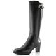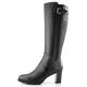 Obutí je snadné díky praktickému vnitřnímu zipu. Vnitřní část kozaček je vyrobena z jemné vlasové textilie a stélka je potažená textilií s krátkým vlasem pro maximální pohodlí. Stabilní široký podpatek o výšce 6,5 cm a lehká podešev s hrubým vzorkem dodávají jistotu při každém kroku. S výškou kozačky 36 cm a standardním obvodem lýtka pro velikost M, jsou tyto kozačky skvělou volbou pro každou příležitost.