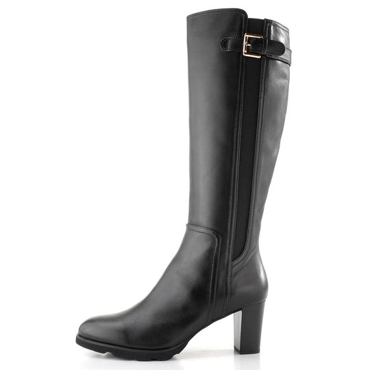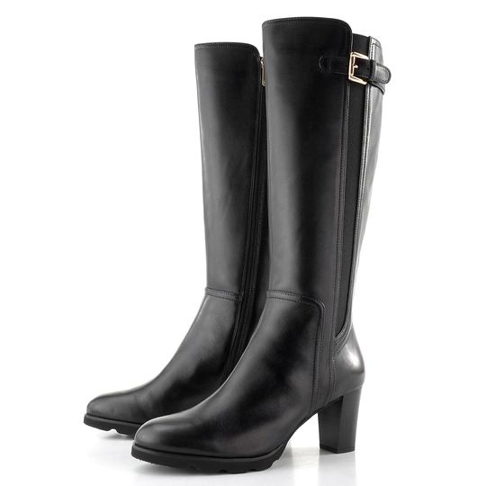Dámské kozačky značky Regarde le Ciel Patricia-95 v černé barvě představují ideální volbu pro podzimní a zimní sezónu. Módní elegance a prvotřídní zpracování se snoubí v designu, který zaujme každou ženu. Svršek z jemné kůže a pružná vsadka po celé délce zajišťují optimální padnutí na lýtku, zatímco funkční přezka umožňuje přizpůsobení obvodu.