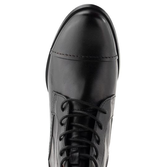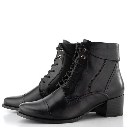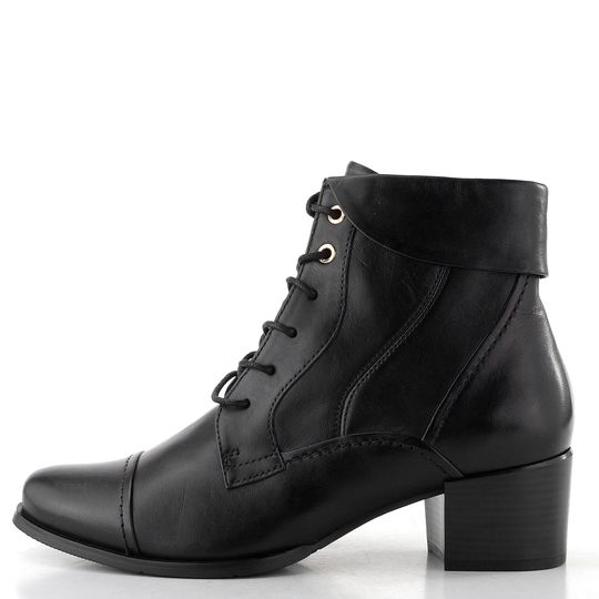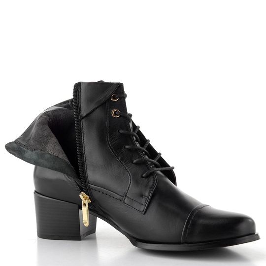 Dámská kotníčková šněrovací obuv s postranním zipem, zdobená límečkem v horním lemu.
