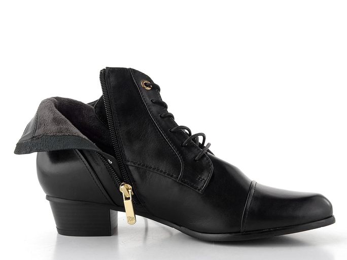 Elegantní dámský kotník od značky Regarde le Ciel přináší spojení stylu a pohodlí. Je vyroben z jemné ušlechtilé kůže, která dodává na luxusu. Jeho štíhlý střih s elegantní špičkou a decentní černá barva se skvěle hodí pro každou příležitost, ať už do kanceláře nebo na večerní akci.