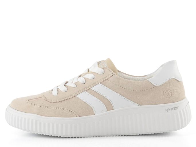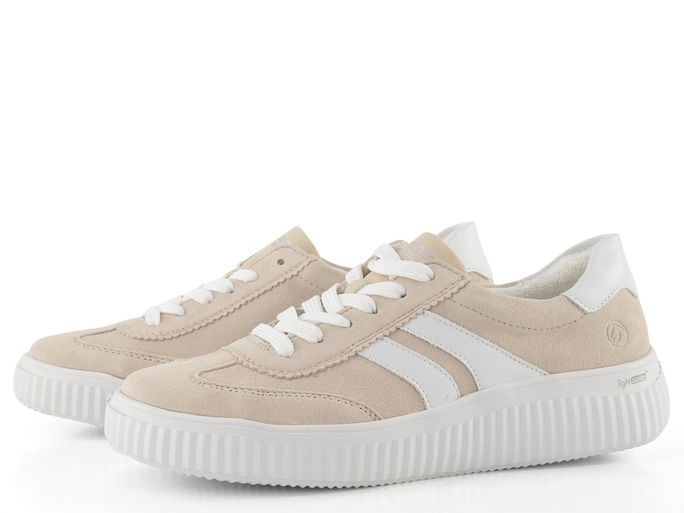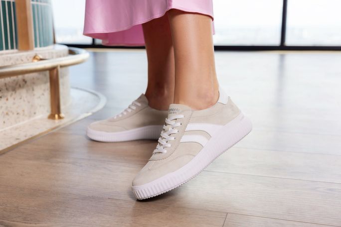 Dámské tenisky značky Remonte v elegantní světlé béžové barvě jsou ideální volbou pro jarní a letní dny. Vyrobené z semišové kůže a doplněné hladkou syntetikou, tyto tenisky kombinují styl s maximálním komfortem. Modelová řada Lite’n Soft zajišťuje pocit, jako byste chodily v oblacích. Prostorná kulatá špička s „extra wide“ střihem je perfektní pro širší chodidla. Klasické šněrování a silně polstrovaný lem přispívají k pohodlí při nošení. Uvnitř se nachází textilní froté podšívka a vyjímatelná, extra měkká vložka s podporou podélné nožní klenby. S lehkou podešví a moderním designem jsou tyto tenisky skvělým společníkem pro každodenní nošení.