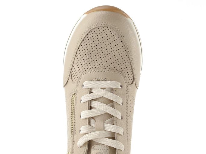 Dámské kožené tenisky v béžové barvě, vybavené vyjímatelnou vložkou a zipem pro snadné obutí.