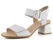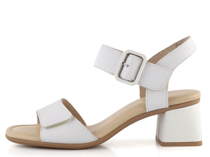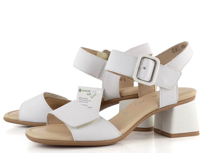 Elegance a pohodlí pro letní dny – to jsou bílé sandály značky Remonte by Rieker. Tyto sandály s hranatější špičkou a svrškem z hladké povrstvené kůže jsou ideální volbou pro každou ženu, která hledá styl a komfort. Díky odepínatelným kovovým přívěškům s logem ELLE a značky Remonte ve stříbrné barvě získávají sandály na jedinečnosti. Přední i kotníkový pásek se zapíná na suchý zip, což zajišťuje snadné obouvání a přizpůsobení. Podšívka z broušené textilie a měkká stélka potažená hladkou kůží poskytují maximální pohodlí při každém kroku. Široký potažený podpatek o výšce 5,5 cm je optimální pro celodenní nošení. Pevnější syntetická podešev s jemným vzorkem zaručuje stabilitu a bezpečnost. Tyto sandály jsou dokonalou volbou pro městské procházky, kancelář i formální příležitosti.