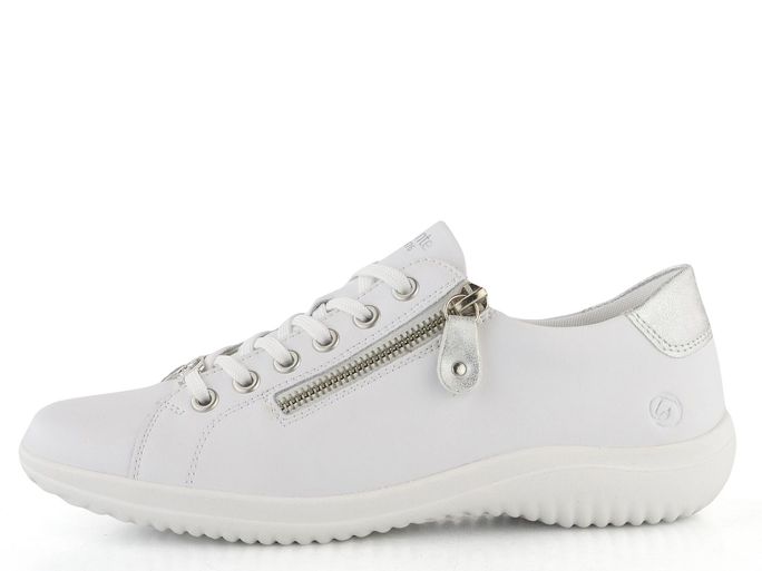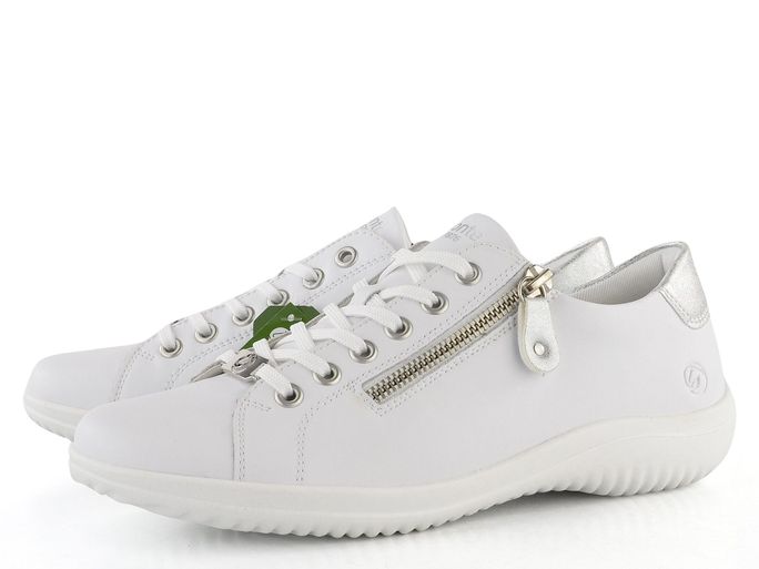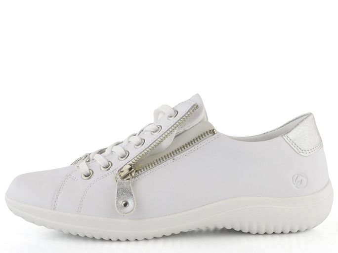 Představujeme elegantní a pohodlné polobotky v čistém designu od značky Remonte, které jsou ideální volbou pro jarní a letní sezónu. Tyto boty vynikají hladkým povrchem z povrstvené kůže v bílé barvě, doplněné o stříbrné metalické prvky, které dodají vašemu outfitu moderní nádech. Praktické šněrování s plochými tkaničkami spolu s funkčním postranním zipem zajišťují snadné nazouvání a pohodlné nošení. Uvnitř naleznete textilní podšívku a měkčený patní lem pro zvýšený komfort. Vyjímatelná stélka nabízí podporu nožní klenby a zesílenou patní zónu, což oceníte při každodenním nošení. Ohebná latexová podešev a lepený výrobní způsob zaručují dlouhou životnost a pohodlí na každém kroku.