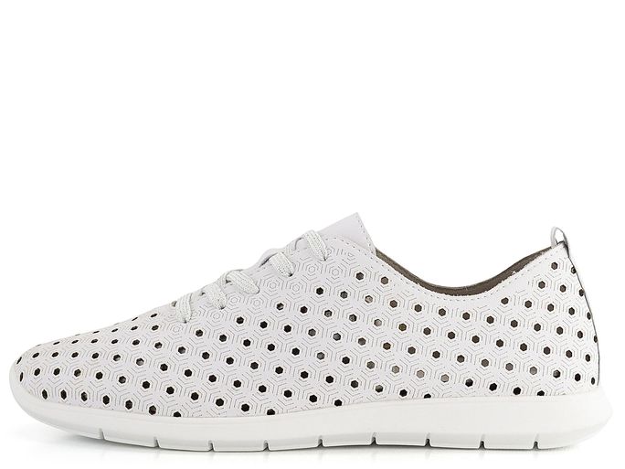 Vykročte do města v elegantních bílých polobotkách od značky Remonte by Rieker. Tento model je ideální pro jarní a letní sezónu. Díky laserem prořezávanému svršku z povrstvené kůže jsou boty nejen stylové, ale i výjimečně prodyšné, což zajišťuje komfortní nošení po celý den. Kulatý tvar špičky a extra měkká vyjímatelná stélka se zesílenou patní zónou a podporou podélné nožní klenby poskytují maximální pohodlí. Stříbrné lurexové tkaničky dodávají botám moderní vzhled. Lehká a flexibilní podešev zajišťuje snadný krok a syntetická podšívka uvnitř boty přispívá k celkovému komfortu. Výška podpatku je 2 cm, což poskytuje ideální rovnováhu mezi elegancí a pohodlím. S těmito polobotkami budete vždy vypadat stylově a cítit se skvěle. Lepený výrobní způsob garantuje dlouhou životnost a kvalitu.