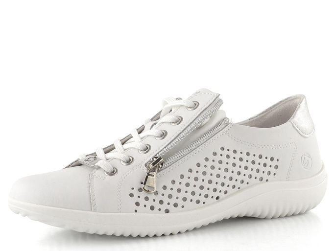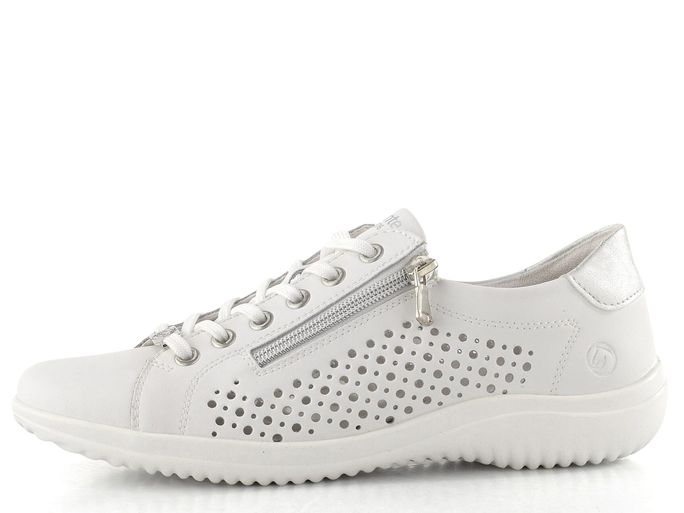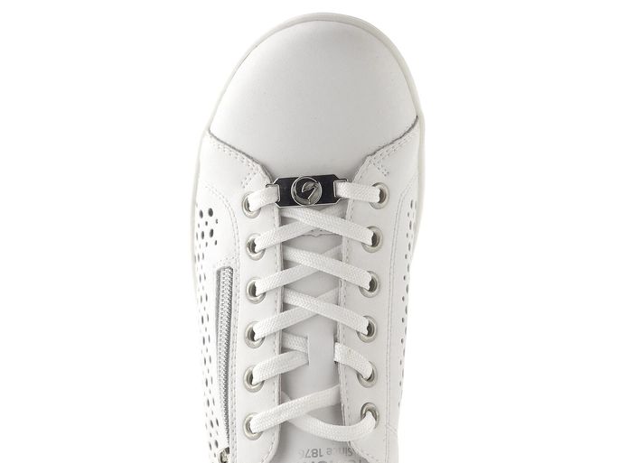 Pohodlné a stylové polobotky od značky Remonte jsou ideální volbou pro jarní a letní dny. Jejich čistý design v bílé barvě je doplněn o stříbrné metalické detaily, což zaručuje, že se stanou skvělým doplňkem k vašemu outfitu. Svršek z hladké povrstvené kůže a prořezávaný vzor na bocích zajišťují nejen elegantní vzhled, ale také příjemnou ventilaci pro vaše chodidla.