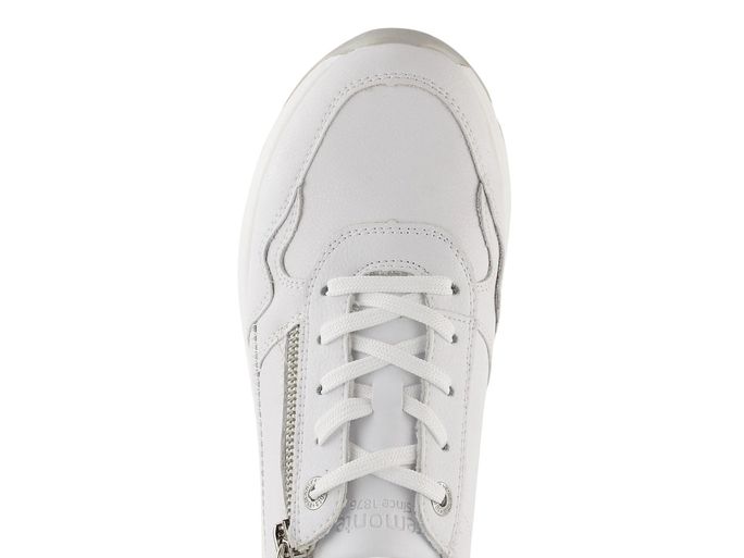 Dámské kožené tenisky v bílé barvě, vybavené vyjímatelnou stélkou a zipem pro snadné obutí.