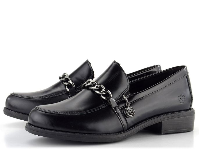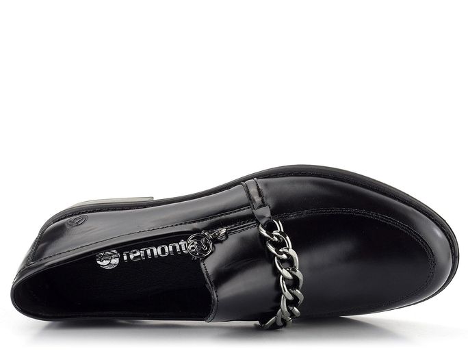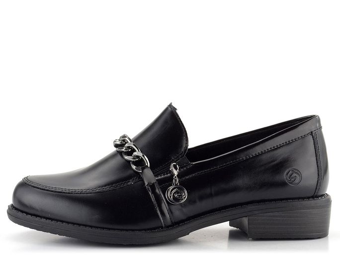 Elegantní hladké polobotky od značky Remonte jsou ideální volbou pro podzimní a zimní sezónu. Tento promo model časopisu ELLE zaujme jednoduchým střihem s kulatou špičkou a černou barvou, která se hodí ke každému outfitu. Svršek tvoří hladká leštěná kůže, která dodává botám luxusní vzhled. Na nártu najdete stylový kovový řetízek v ocelově šedé barvě a všité pruženky, které usnadňují obutí a zajišťují pohodlnou chůzi.