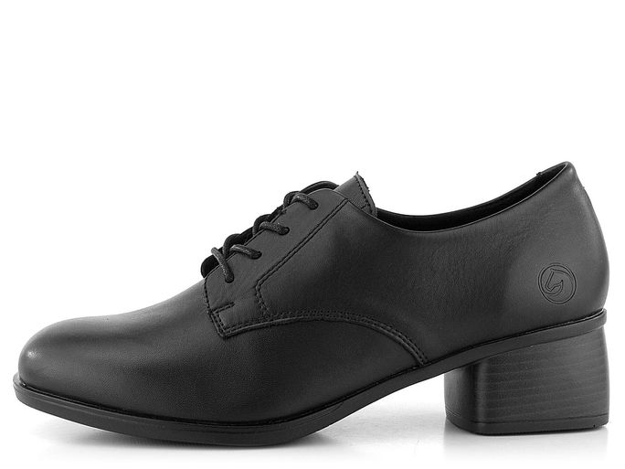 Elegantní a pohodlné polobotky od značky Remonte jsou ideální volbou pro podzimní a zimní sezónu. Tyto boty vynikají svým jednoduchým střihem s kulatou špičkou a hladkým koženým svrškem v černé barvě. Díky šněrování s kulatými tkanicemi a podšívce z broušené textilie poskytují nejen styl, ale i komfort.