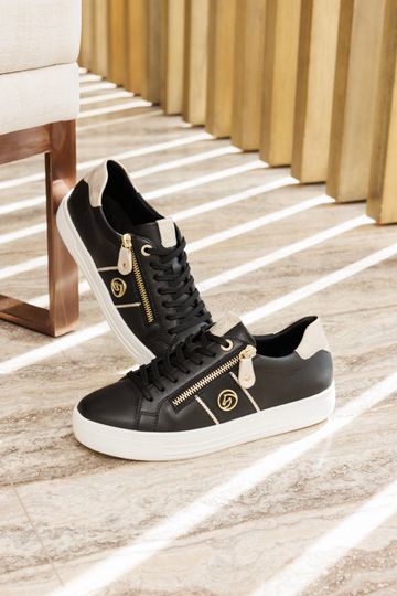 Dámské kožené tenisky v černé barvě, s rovnou platformou, funkčním zipem a vyjímatelnou stélkou.