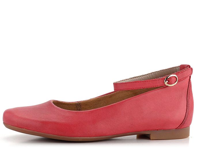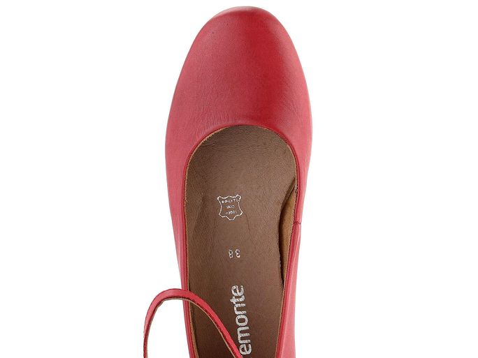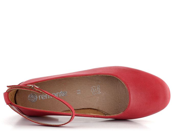 Prožijte jaro a léto v maximálním pohodlí s těmito červenými koženými balerínami od značky Remonte. Díky svršku z hladké kůže v malinovém odstínu s jemným stínováním budou tyto baleríny skvělým doplňkem vašeho šatníku. Kulatá špička a kotníkový upínací pásek na suchý zip s dekorativní sponou zajišťují nejen styl, ale i praktičnost. Uvnitř najdete podšívku z broušené textilie a extra měkkou koženou stélku, která poskytuje neuvěřitelný komfort při každém kroku. Ohebná latexová podešev s jemným vzorkem a nízký podpateček o výšce 1,4 cm zaručují pohodlnou chůzi po celý den. Tyto baleríny jsou ideální volbou pro každodenní nošení do města, do kanceláře i na lehkou procházku.