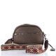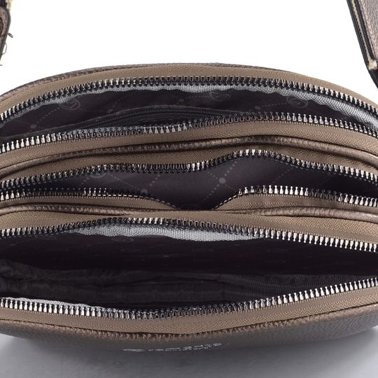 Menší dámská crossbody kabelka od značky Remonte by Rieker zaujme svou elegantní hnědou metalickou barvou s tmavě bronzovým odstínem. Je vyrobena z kvalitní strukturované syntetiky a její kovové prvky jsou ve stylové tmavě stříbrné barvě. Kabelka nabízí tři samostatné zipové kapsy shora a na zadní straně najdete další praktickou zipovou kapsu. Vnitřní uspořádání zahrnuje otevřenou kapsičku na klíče nebo mobil a zipovou kapsu na cennosti. Barevný ramenní popruh v cihlovo-černo-béžové kombinaci je odepínatelný a nastavitelný v délce od 76 do 150 cm. Rozměry kabelky jsou: šířka uprostřed 21 cm, výška 17 cm a hloubka dna 5,5 cm. Tato kabelka je ideálním doplňkem pro podzimní a zimní sezónu, který kombinuje praktičnost s moderním designem.