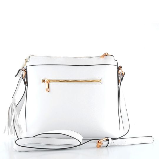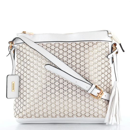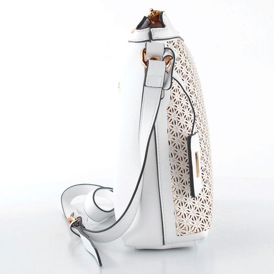 Zažijte eleganci a praktičnost s dámskou crossbody kabelkou od značky Remonte. Tato kabelka vyniká svou bílo-zlatou kombinací, která dodá vašemu outfitu nádech luxusu. Vyrobena z hladké syntetiky, nabízí nejen styl, ale i odolnost. Přední strana je ozvláštněna prořezávaným vzorem na světle zlatém podkladě, což přidává kabelce na originalitě. Praktické detaily jako zipová kapsa na zadní straně a zipový uzávěr shora zajišťují bezpečnost vašich cenností. Vnitřní prostor je vybaven červenou podšívkou, kapsičkou na klíče a zipovou kapsou na cennosti. Ramenní pásek s možností délkové regulace zajišťuje pohodlné nošení. Rozměry kabelky jsou ideální pro každodenní použití: šíře 27 cm, výška 24 cm a hloubka dna 6 cm.