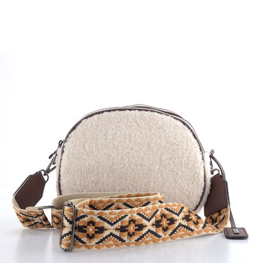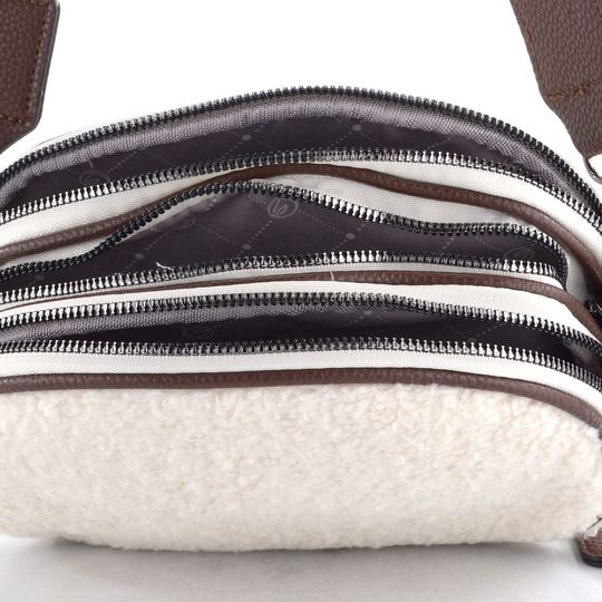 Elegantní a praktická crossbody kabelka od značky Remonte by Rieker je ideálním doplňkem pro podzimní a zimní sezónu. Tato menší dámská kabelka zaujme svým svrškem z umělého beránku ve smetanové barvě s hnědými doplňky a tmavě stříbrným kováním. Kabelka nabízí tři samostatné zipové kapsy shora, což zajišťuje přehledné uspořádání vašich věcí. Na zadní straně je k dispozici další zipová kapsa, ideální pro rychlý přístup k drobnostem. Vnitřní vybavení zahrnuje otevřenou kapsičku na klíče či mobil a zipovou kapsu na cennosti. Barevný ramenní popruh s délkou nastavitelnou od 75 do 150 cm je odepínatelný a přizpůsobí se vašim potřebám. S rozměry 21 cm na šířku, 17 cm na výšku a hloubkou dna 5,5 cm je tato crossbody kabelka skvělým společníkem pro každodenní nošení i speciální příležitosti.