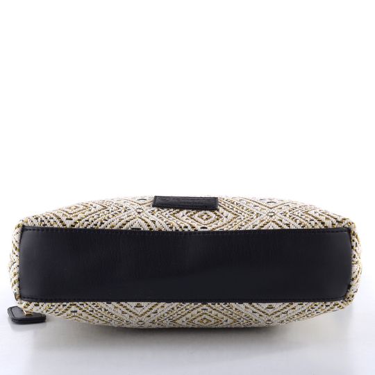 Dámská crossbody kabelka od značky Remonte by Rieker je ideálním doplňkem pro jarní a letní sezónu. Její střední velikost je praktická, i když formát A4 se do ní nevejde. Kabelka je vyrobena z pevné vytkávané textilie a hladké syntetiky, což zaručuje odolnost a styl. Krémový podklad s černo-zlatým vzorem a černými doplňky dodává eleganci, zatímco zlaté kování podtrhuje její luxusní vzhled.