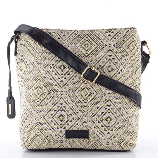 Trendy dámská crossbody kabelka s vytkávaným vzorem.