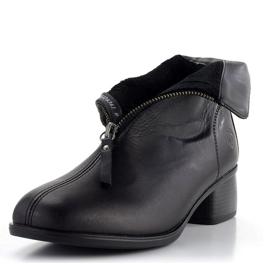 Dámský lehce vyteplený kotník na podpatku s funkčním zipem na nártu.