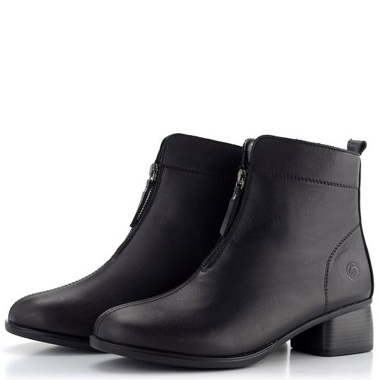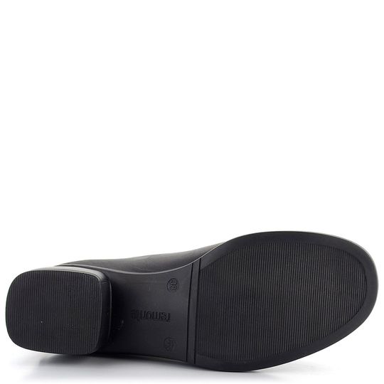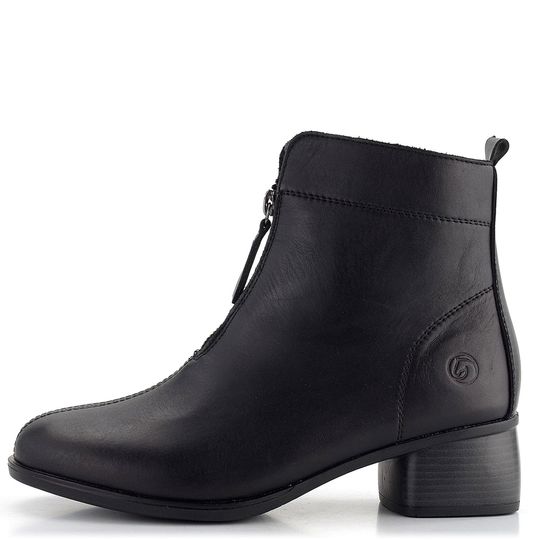 Dámská mírně vyteplená kotníčková obuv od značky Remonte by Rieker je ideální volbou pro podzimní a zimní sezónu. Tento model vyniká jednoduchým střihem s kulatou špičkou a svrškem z hladké kůže v elegantní černé barvě. Funkční zip na nártu zajišťuje pohodlné obutí, zatímco hebká teplejší vlasová podšívka uvnitř boty poskytuje komfort a teplo. Vyjímatelná stélka s filcovým potahem přispívá k ještě většímu pohodlí. Boty mají nižší pohodlný podpatek o výšce 4,5 cm a výšku kotníku 12,5 cm (bez podpatku). Lepený výrobní způsob zaručuje dlouhou životnost a kvalitu. Perfektní volba pro každodenní nošení ve městě, do kanceláře nebo na lehkou procházku.