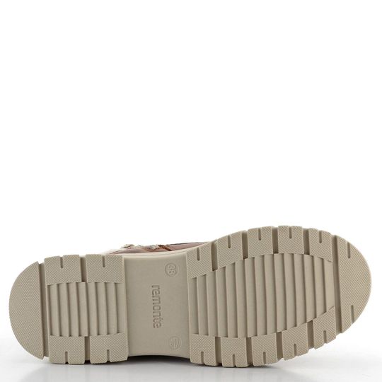 Vyšší latexová podešev s hrubším protismykovým vzorkem zajišťuje stabilitu a bezpečnost na kluzkém povrchu. Výška podpatku je 5 cm a výška kotníku měří 11 cm (bez podešve). Tento model je vyroben lepeným způsobem, což zaručuje jeho dlouhou životnost. Dopřejte si kvalitu a komfort, který nabízí značka Remonte.