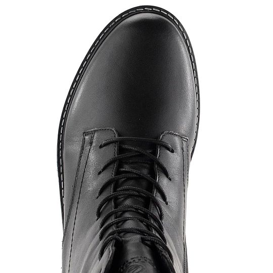 Pro ženy, které hledají komfortní a stylovou obuv na podzim a zimu, jsou kotníkové boty od značky Remonte ideální volbou. Vyrobené z hladké kůže v elegantní černé barvě, tyto boty nikdy nevyjdou z módy. Jejich kulatá špička a klasické šněrování s kulatými tkaničkami zaručují pohodlí a snadné obutí. Navíc mají funkční zip na vnitřní straně, který usnadňuje nazouvání. Teplejší vnitřní podšívka z hebkého textilního vlasu a filcová vyjímatelná stélka zajistí teplo a pohodlí i v chladnějších dnech. Bytelná latexová podešev s nízkým, širokým podpatkem a hrubým vzorkem poskytuje stabilitu a bezpečný krok. S výškou podpatku 4,3 cm a výškou kotníku 18 cm (bez podpatku) jsou tyto boty nejen praktické, ale i stylové. Perfektní pro každodenní nošení ve městě, do kanceláře nebo na lehkou procházku.