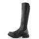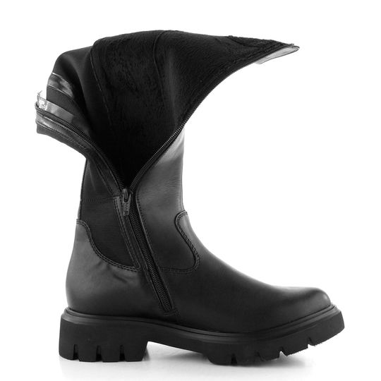 Horní obvod kozačky bez napnutí měří 36 cm (velikost 38) a pružina umožňuje rozšíření až o cca 4,5 cm, což činí tento model vhodným pro užší až standardní lýtka (velikost S až M). Výška kozaček je cca 35 cm (bez podpatku) s předním dílem o 2 cm vyšším. Podešev s hrubým protismykovým dezénem je odlehčená, takže boty působí robustně, ale jsou poměrně lehké. Výška podpatku je 4 cm, což zajišťuje pohodlné nošení po celý den.