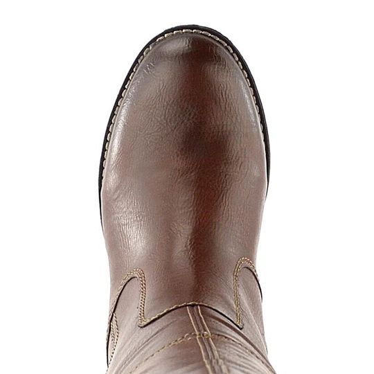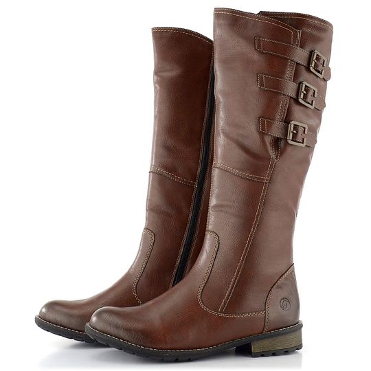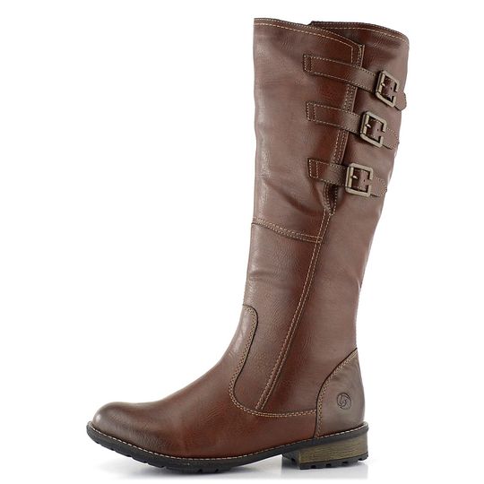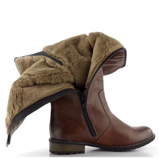 Hledáte kozačky s možností šířkové regulace? Komfortní kozačky od značky Remonte s Vario-Schaft systémem jsou ideální volbou. Díky důmyslným postranním páskům lze snadno upravit lýtkový obvod a přizpůsobit je tak širokým lýtkům velikosti XL. Svršek z poddajné syntetiky ve stínovaném čokoládově hnědém odstínu dodává botám elegantní vzhled, zatímco vnitřní podšívka z husté jehněčí kožešinky zajistí teplo i v chladných dnech. Kozačky mají prostornější střih, vyjímatelnou stélku potaženou filcem a nízký, široký podpatek o výšce 3 cm. Horní obvod kozačky je 40 - 44,5 cm (pro vel. 38) a výška samotné kozačky je 37 cm. Podešev s příměsí latexu zaručuje pohodlí při každém kroku. Lepený výrobní způsob zajišťuje trvanlivost a spolehlivost. Tyto kozačky jsou perfektní volbou pro podzimní a zimní sezónu.