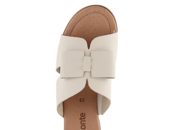 Dámské elegantní pantofle ve smetanové barvě se širokým pohodlným podpatkem.