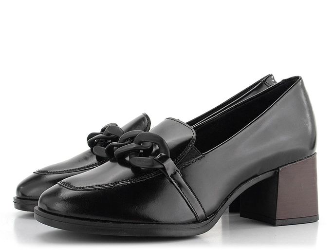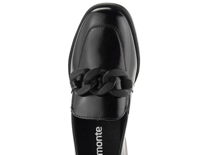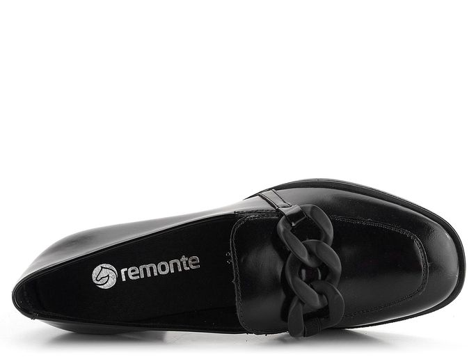 Dámské elegantní polobotky značky Remonte představují ideální volbu pro formální příležitosti i každodenní nošení. Tyto boty zaujmou hladkou leštěnou kůží v černé barvě, která dodává sofistikovaný vzhled. Na nártu vyniká dominantní plastový řetízek, který přidává moderní akcent. Kulatější špička a módně vyvýšený okraj nártu zajišťují stylový design. Díky všitým pruženkám po stranách nártu je obutí snadné a pohodlné.