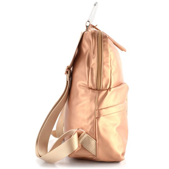 Elegantní dámský batoh od značky Remonte je perfektní volbou pro každodenní nošení. Jeho metalický růžovo-bronzový odstín přitáhne pozornost a dodá vašemu outfitu šmrnc. Vyrobený z poddajné syntetiky, nabízí nejen styl, ale i pohodlí. Díky střední velikosti batohu, který pojme formát A4, je ideální pro městské dobrodružství nebo do kanceláře.