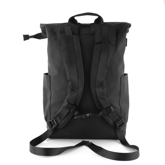 Městský stylový batoh v černé barvě se zapínáním na sponu a prostorem pro notebook.