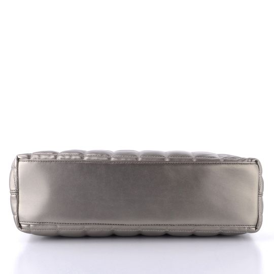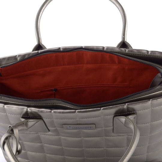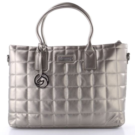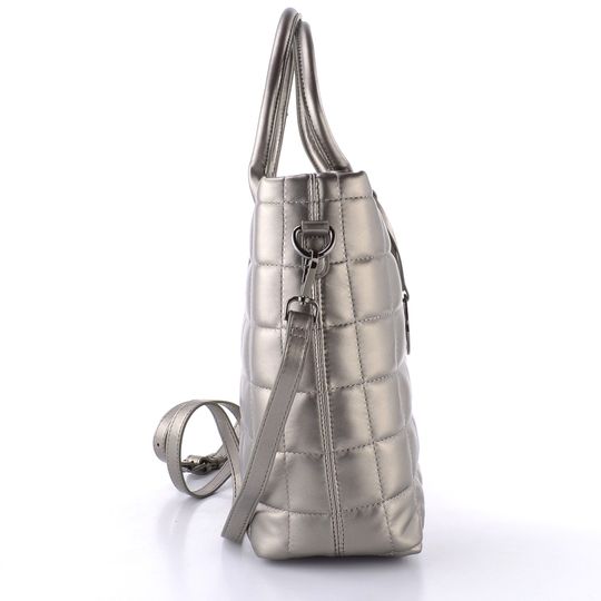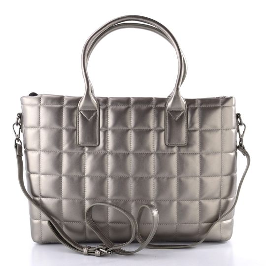 Dámská módní shopper kabelka s prošívaným vzorem ve starostříbrné barvě.