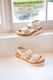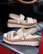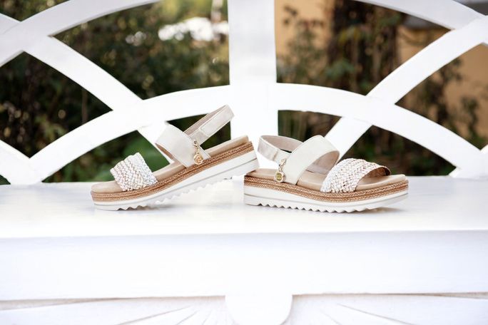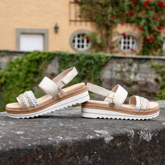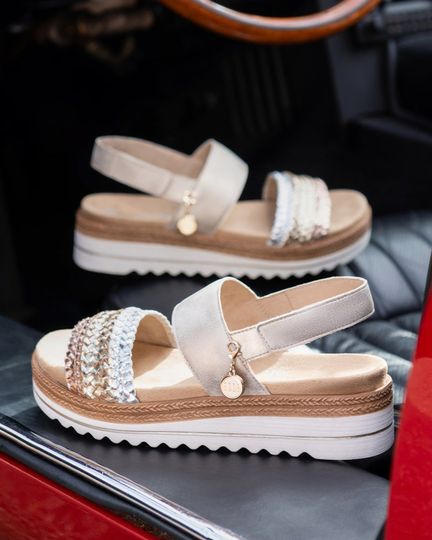 Dámské metalické sandálky na platformě, s upínacím páskem na suchý zip a vyjímatelnou stélkou.