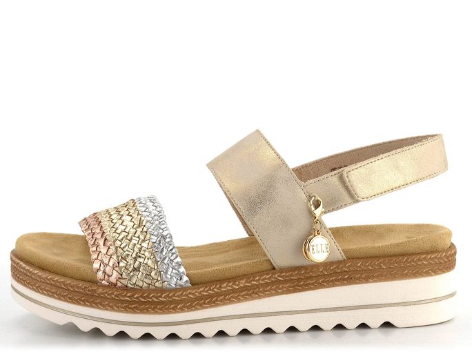 Patní pásek se upíná na suchý zip, zatímco nártový pásek má z vnitřní strany všitou pruženku pro maximální pohodlí. Sandály jsou vybaveny odepínatelnými kovovými přívěšky s logem ELLE a značky Remonte. Vnitřní strana pásků je textilní, což zajišťuje příjemný pocit při nošení.