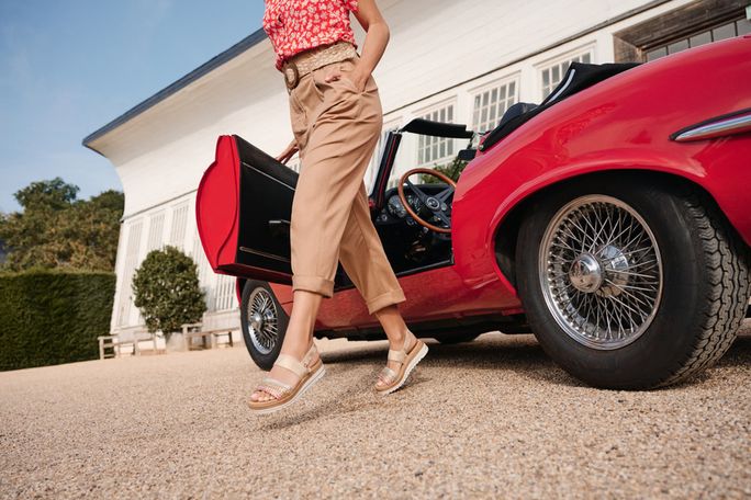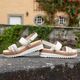 Vyjímatelná stélka, potažená broušenou textilií, je měkká a uchycena pomocí suchých zipů. Vyšší podešev s malým klínkem a vlnkovitým vzorkem poskytuje stabilitu a komfort. Sandály jsou vyrobeny lepeným výrobním způsobem, což zaručuje jejich trvanlivost a dlouhou životnost.