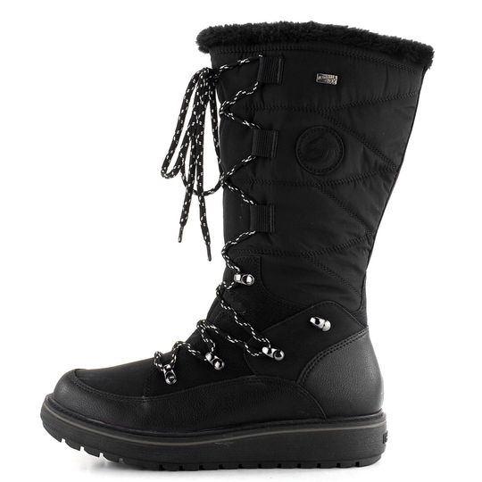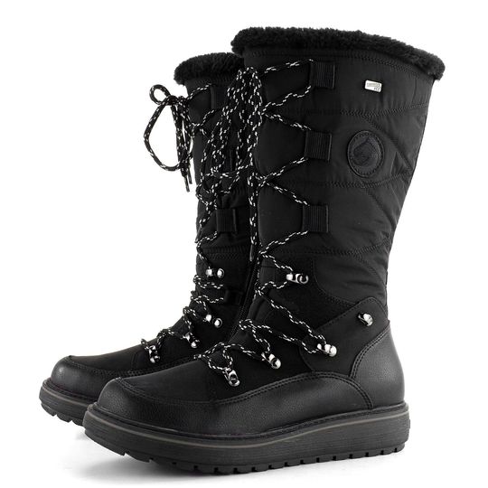 Pro chladné zimní dny jsou dámské polokozačky od značky Remonte ideální volbou. Jejich elegantní černá barva a stylové šněrování s kulatými tkaničkami dodají vašemu outfitu šmrnc. Svršek je vyroben z kombinace jemně strukturované kůže, matné syntetiky a prošívané textilie, což zajišťuje nejen estetický vzhled, ale i odolnost. Vnitřní teplá podšívka z vlněné střiže a vyjímatelná stélka s termoizolační fólií zaručují pohodlí a teplo. Vodoodpudivá membrána remonteTEX® chrání proti vlhkosti. Latexová podešev s patentovanými gripy poskytuje stabilitu na každém kroku. Výška podpatku je 3,8 cm, což zajišťuje komfort při celodenním nošení.