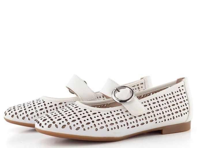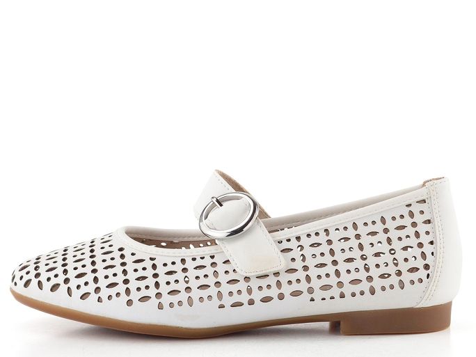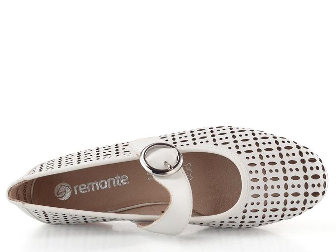 Dámské baleríny značky Remonte jsou ideálním společníkem pro jarní a letní dny. Tyto prodyšné boty v elegantní bílé barvě kombinují komfortní střih s moderním designem. Vyrobené z hladké povrstvené kůže, s ozdobným laserovým prořezáváním, které zajišťuje příjemné větrání, se stanou vaším oblíbeným kouskem.