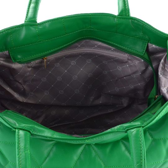 Elegantní a prostorná dámská shopper kabelka od značky Remonte je ideální volbou pro každodenní nošení do města či kanceláře. Je vyrobena z poddajné syntetiky, která zajišťuje dlouhou životnost a pohodlné nošení. Kabelka vyniká svěží sytou zelenou barvou a prošívaným geometrickým vzorem, což jí dodává moderní a stylový vzhled.