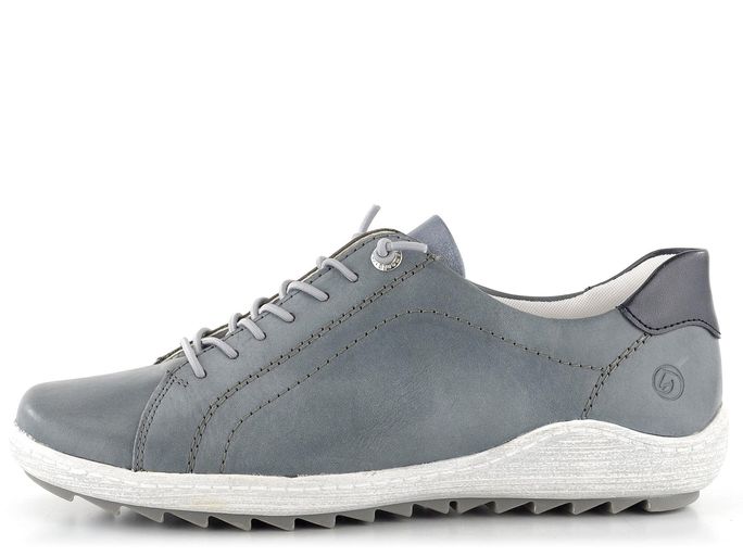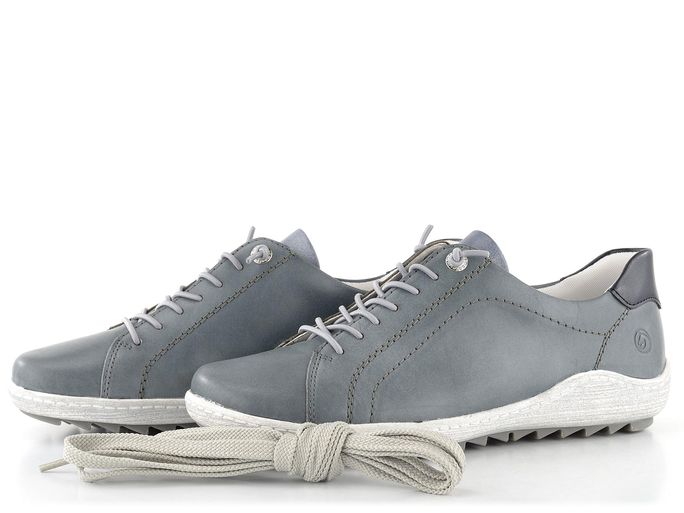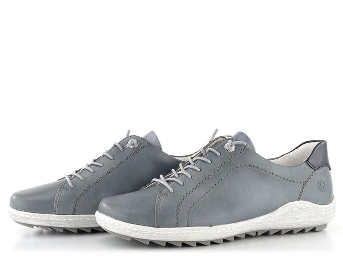 Extra pohodlné dámské polobotky ve sportovně vycházkovém stylu od značky Remonte by Rieker jsou skvělou volbou pro každodenní nošení. Díky prozouvacímu typu obuvi a pružným tkaničkám zakončeným uzlíky je obouvání i vyzouvání snadné a rychlé. Svršek z hladké kůže v šedomodrém odstínu s tmavě modrým dílcem na patě dodává botám elegantní vzhled. Uvnitř najdete textilní podšívku a měkčený obvodový lem, což zajišťuje maximální komfort. Vyjímatelná stélka s podporou podélné klenby a zesílenou patní zónou nabízí extra měkký došlap. Latexová podešev s hrubým, pilkovitým vzorkem poskytuje spolehlivou trakci. Výška podpatku je 2,7 cm, což je ideální pro pohodlné nošení po celý den. Tyto boty jsou perfektní volbou pro ženy, které hledají stylovou a pohodlnou obuv na jaro a léto.