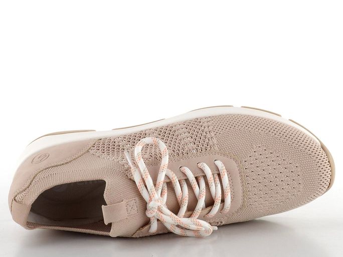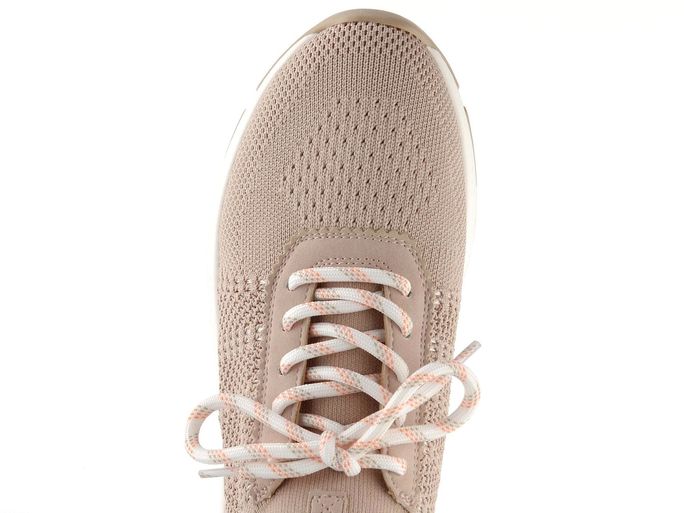 Prodyšné letní tenisky od značky Remonte v jemné pudrově růžové barvě přinášejí kombinaci stylu a pohodlí. Díky prozouvacímu designu a pružnému ponožkovému lemu se snadno nazouvají a optimálně přizpůsobí tvaru vašeho nártu. Svršek z úpletové textilie zajišťuje prodyšnost, zatímco zpevněný vnitřní opatek s extra polstrováním nad patou poskytuje potřebnou oporu. Tenisky jsou vybaveny extra měkkou vyjímatelnou vložkou z paměťové pěny, která podporuje nožní klenbu a zvyšuje komfort při chůzi. Ohebná podešev s latexovým nášlapem přispívá k pohodlnému kroku. Ideální volba pro ty, kdo hledají stylovou a pohodlnou obuv na jaro a léto.