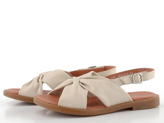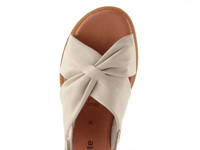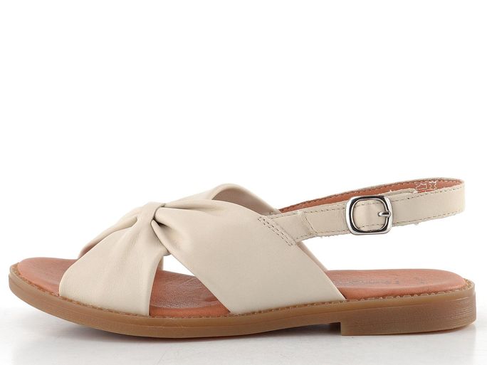 Kožené dámské sandálky v krémové barvě s patním páskem upínaným na suchý zip.