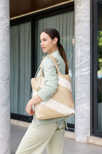 Prostorná a stylová kabelka od značky Remonte je ideálním doplňkem pro každou ženu, která ocení kvalitu a design. Tato proplétaná dámská kabelka v elegantní kombinaci bílé a zlaté barvy se hodí na každodenní nošení i speciální příležitosti. Její velký střih pohodlně pojme formát A4, takže je perfektní pro práci i volný čas.
