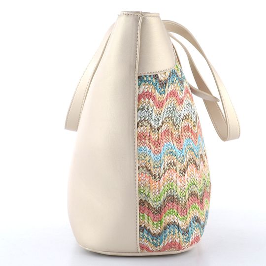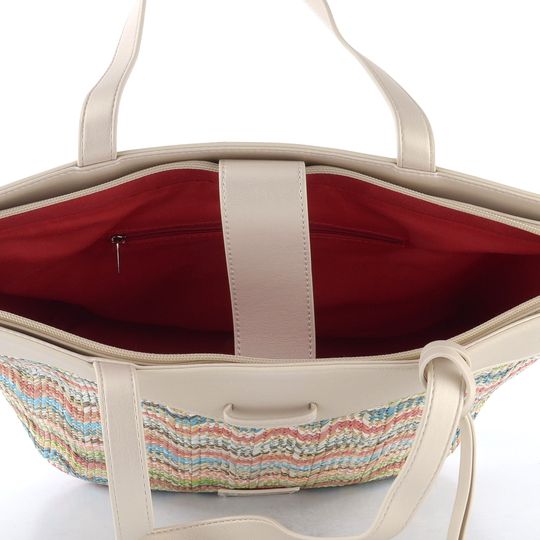 Elegantní dámská shopper kabelka od značky Remonte je ideálním doplňkem pro ty, kdo hledají prostor a styl v jednom. Její barevný vzor na přední straně, tvořený splétaným lýkem, přináší do vašeho outfitu šmrnc a originalitu. Perleťová barva v kombinaci s přírodními tóny, jako jsou smetanová, béžová, oranžová a další, dodává kabelce jemný a sofistikovaný vzhled. Praktické rozměry s horní šířkou 43 cm a výškou 27 cm zajišťují, že pohodlně pojme formát A4. Kabelka je vybavena vnitřními kapsičkami pro organizaci vašich drobností a pevnými madly pro pohodlné nošení. Tento kousek je nejen stylový, ale také funkční, což z něj činí skvělou volbu pro každodenní použití.
