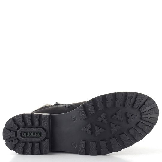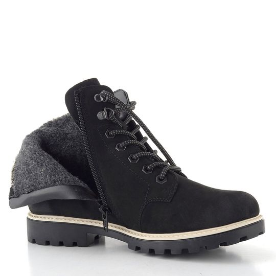 Dámský kotník od značky Remonte by Rieker spojuje styl a funkčnost, ideální pro chladné podzimní a zimní dny. Tento pohorkový model nabízí teplou filcovou podšívku, která udržuje nohy v teple, a vodoodpudivou membránu "remonteTEX®", která chrání před vlhkostí. Svršek z broušené kůže a syntetiky dodává botám elegantní vzhled, zatímco šněrování s kulatými tkaničkami a zip na vnitřní straně usnadňuje obutí. Vyšší latexová podešev s traktorovým vzorkem zajišťuje stabilitu a pohodlí na každém kroku. Výška kotníku 13 cm a podpatky 3,2 cm podtrhují moderní design, který oceníte při každé příležitosti.