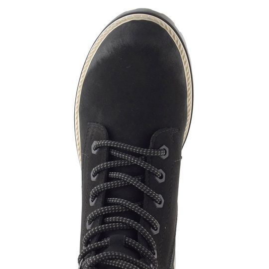 Dámský kožený zimní kotník v černé barvě s barevnou bandáží, teplou podšívkou a vodoodpudivou membránou.