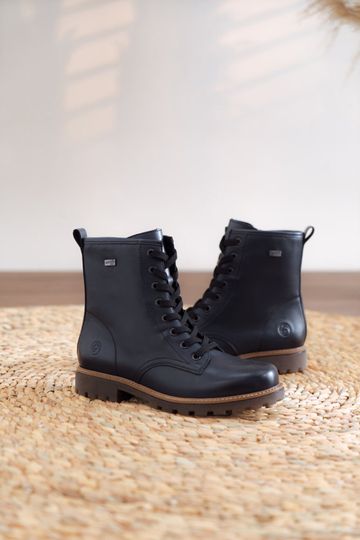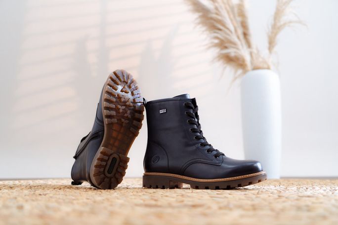 Vnitřní podšívka z počesané textilie s molitanovou vložkou poskytuje příjemné teplo, zatímco vyjímatelná vložka s podporou nožní klenby a patním absorbérem zaručuje celodenní komfort. Díky vodoodpudivé membráně remonteTEX® a bytelnému latexovému podešvi s nízkým podpatkem se můžete spolehnout na kvalitu a funkčnost v každém kroku. Výška kotníku je 15 cm, což dodává botám stabilitu a styl.