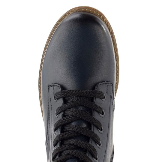 Komfortní dámský kotník značky Remonte je ideální volbou pro podzimní a zimní měsíce. Vyrobený z hladké kůže a syntetiky, zajišťuje nejen styl, ale i pohodlí. Tmavě modrá barva a kulatá špička dodávají botám elegantní vzhled. Klasické šněrování s kulatými tkaničkami a funkční zip na vnitřní straně usnadňuje obutí, což oceníte při každodenním nošení.