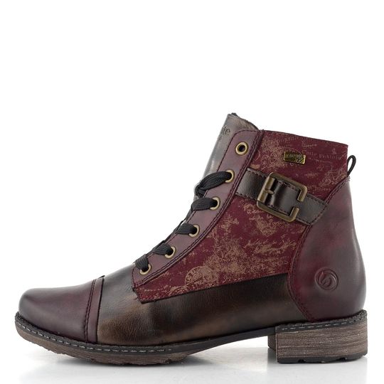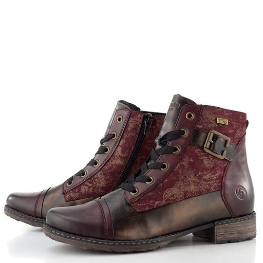 Díky šněrování s kovovými očky si snadno upravíte šířku, zatímco zip na vnitřní straně usnadňuje obouvání. Teplá podšívka z hebké vlasové textilie a vyjímatelná stélka s perforací zajišťují maximální pohodlí po celý den. S vodoodpudivou membránou remonteTEX® se nemusíte obávat nepříznivého počasí. S výškou kotníku 12 cm a nízkým podpatkem 3 cm jsou tyto boty ideální volbou pro městské procházky či formální příležitosti.