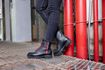 Podšívka z hebké vlasové textilie a měkká stélka potažená filcem zajišťují pohodlí i v chladných dnech. Lehká syntetická podešev s hrubým vzorkem (traktor) poskytuje stabilitu a bezpečný krok. Výška podpatku je 4 cm a kotník dosahuje výšky 14 cm (bez podpatku), což dává botám elegantní vzhled. Tento model je vyroben lepeným způsobem, což garantuje dlouhou životnost.