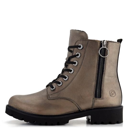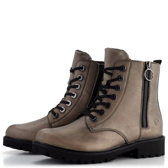 Vyzkoušejte stylový dámský zimní kotník v metalickém odstínu od značky Remonte by Rieker, který přináší nejen eleganci, ale i pohodlí. Tento model se pyšní jemně strukturovaným povrstveným koženým svrškem v odstínu taupe s metalickým leskem. Díky šněrování s kovovými očky a funkčním zipům na obou stranách je obouvání rychlé a snadné. Vnitřní podšívka z hebké vlasové textilie a měkká stélka potažená filcem zaručují teplo a komfort po celý den. Lehká syntetická podešev s hrubým vzorkem a širokým podpatkem (4 cm) poskytují stabilitu a pohodlí na každém kroku. Výška kotníku je 14 cm (bez podpatku), což dodává botám elegantní vzhled. Tento model je ideální volbou pro podzimní a zimní sezónu 2023/24, kdy oceníte nejen jeho krásu, ale i praktičnost.